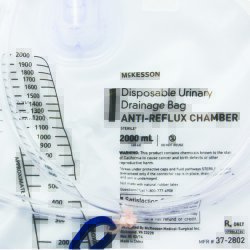 Urinary Drain Bag McKesson Anti-Reflux Valve Sterile 2,000 mL Vinyl