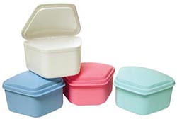 DENTURE BOX 12PK One piece construction. NO drain holes. Solid locking mechanism. Assorted 24/pk con