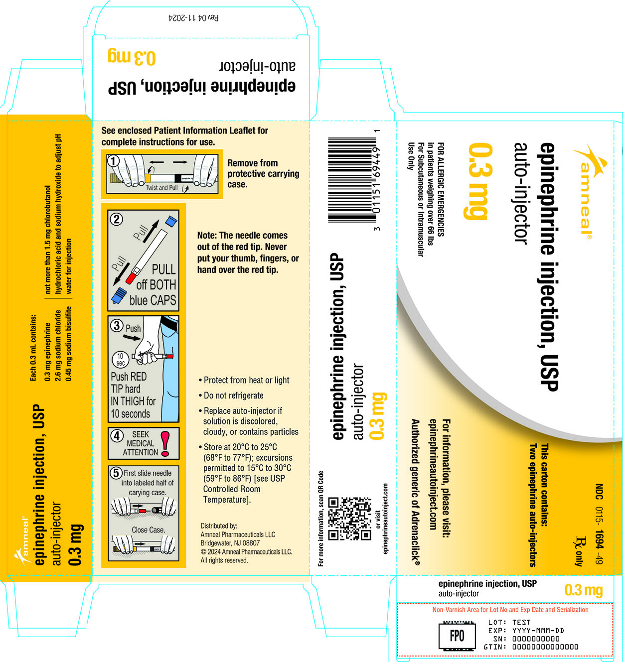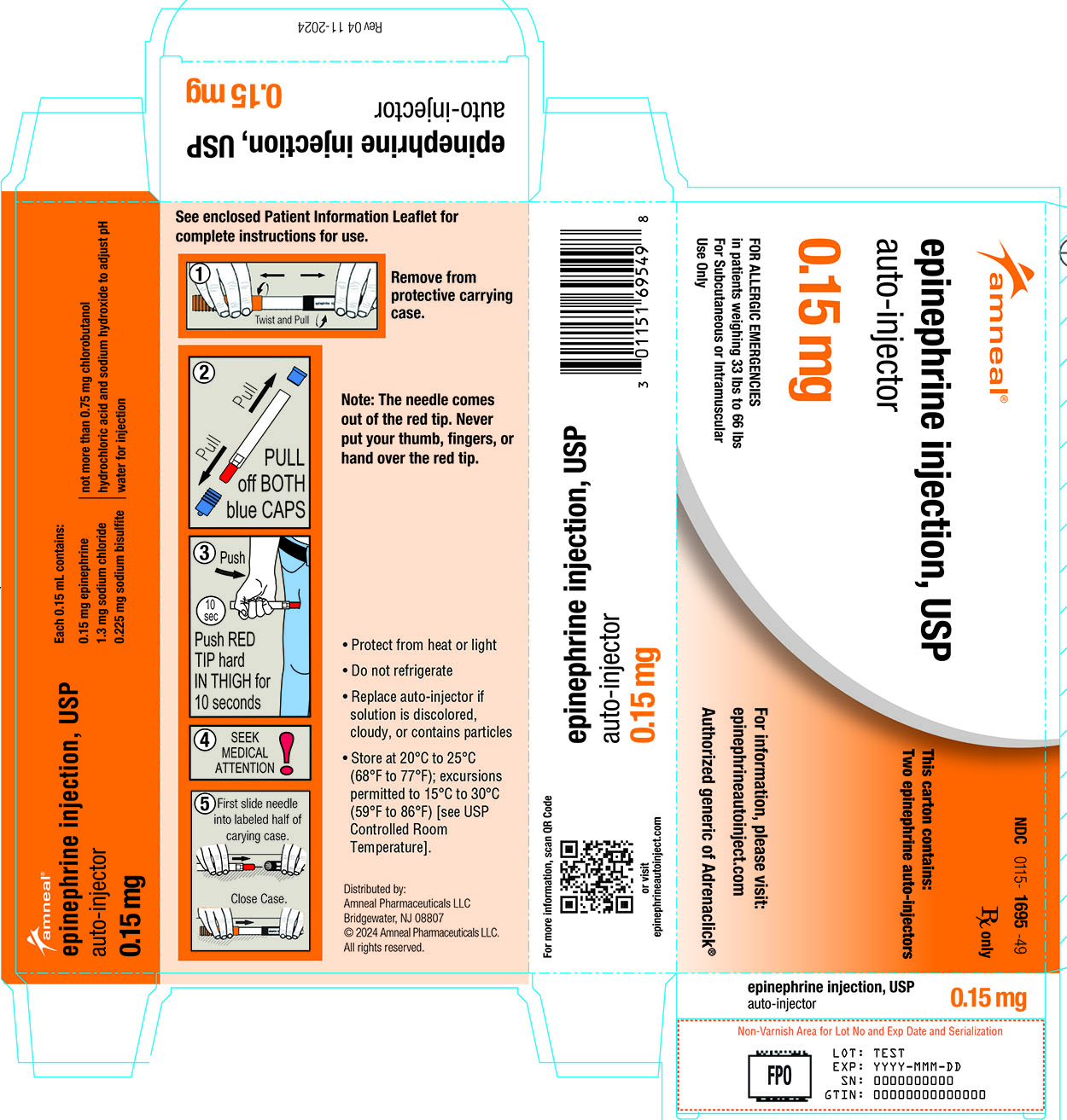 Epinephrine Auto-Injector 0.15mg 2/pk (Rx) (US Only Excluding IN ND and WY)