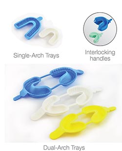 Flo tray L B dual arch 100pk Fluoride trays, large, blue, dual arch, 100 pcs. per pk